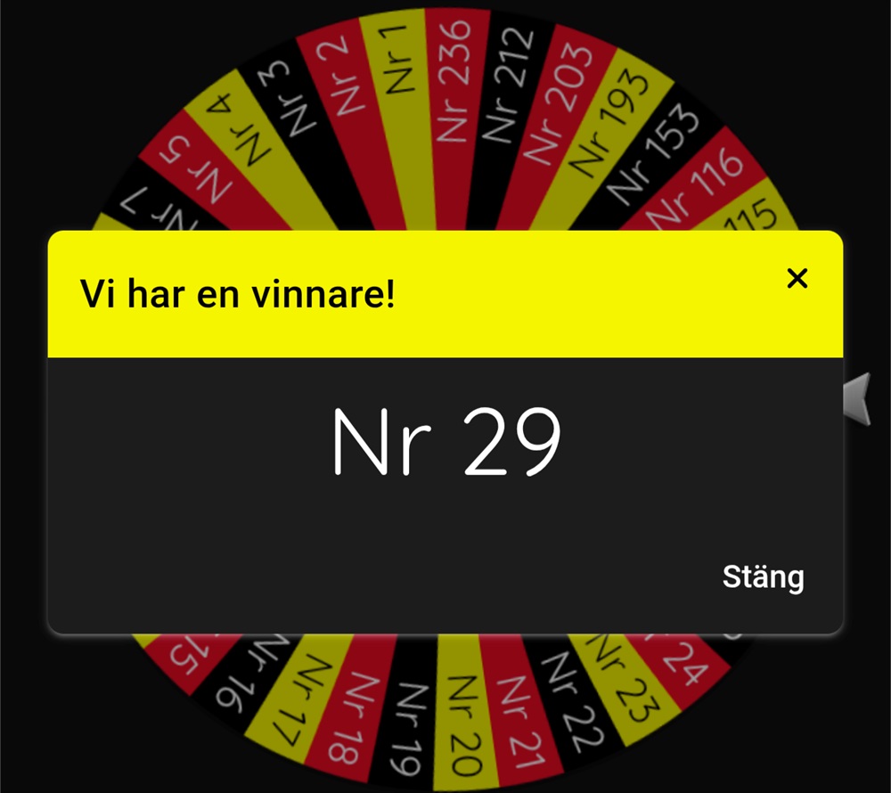 Dragning sker den 15:e varje månad (med en månads fördröjning), vinnaren meddelas av lotteriansvarig, Berit Persson och presenteras här på hemsidan.